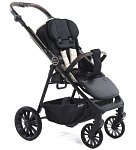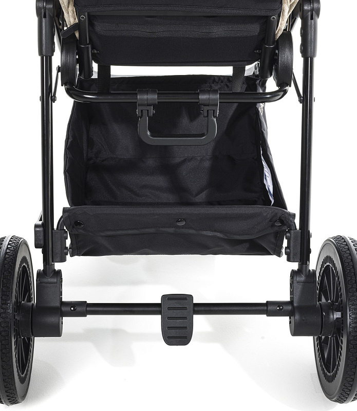 В комплекте: рама (шасси) с каркасом прогулочного блока и вместительной корзиной, большой и функциональный капюшон, передний амортизирующие колеса, задние большие проходимые колеса, съёмный защитный поручень (бампер) с мягким разделителем для ножек.