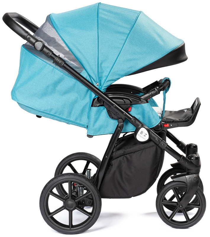 Прогулочная коляска Bebizaro Sport – всесезонная коляска с реверсивным прогулочным блоком. Большой регулируемый капюшон и утепленная накидка на ножки. Водоотталкивающая ткань со специальной защитой от солнца. Большие задние колёса и передние малые (передние – поворотные), система амортизации «Anti Shock» (поглощение колебаний), обеспечивают мягкий и плавный ход коляски даже на неровной дороге, тормозная система EASY STOP.