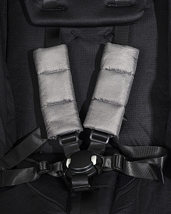 Бампер 360 градусов в сочетании с паховым ремнем защитит ребенка от выпадания. Бампер можно отстегнуть и откинуть, с одной стороны, благодаря чему Ваш ребенок сможет забраться в коляску самостоятельно, а 5-точечные ремни с мягкими плечевыми накладками и магнитная полуавтоматическая застежка (фастекс) с сильными магнитами будет служить дополнением для безопасности ребенка.