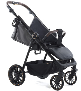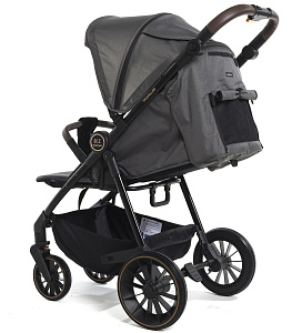 В комплекте: рама (шасси) с каркасом прогулочного блока и вместительной корзиной, большой и функциональный капюшон, плотная утепленная накидка на ножки прогулочного блока, передний амортизирующие колеса, задние большие проходимые колеса, съёмный защитный поручень (бампер) с мягким разделителем для ножек, съёмный подстаканник, дождевик и москитная сетка для прогулочного блока.