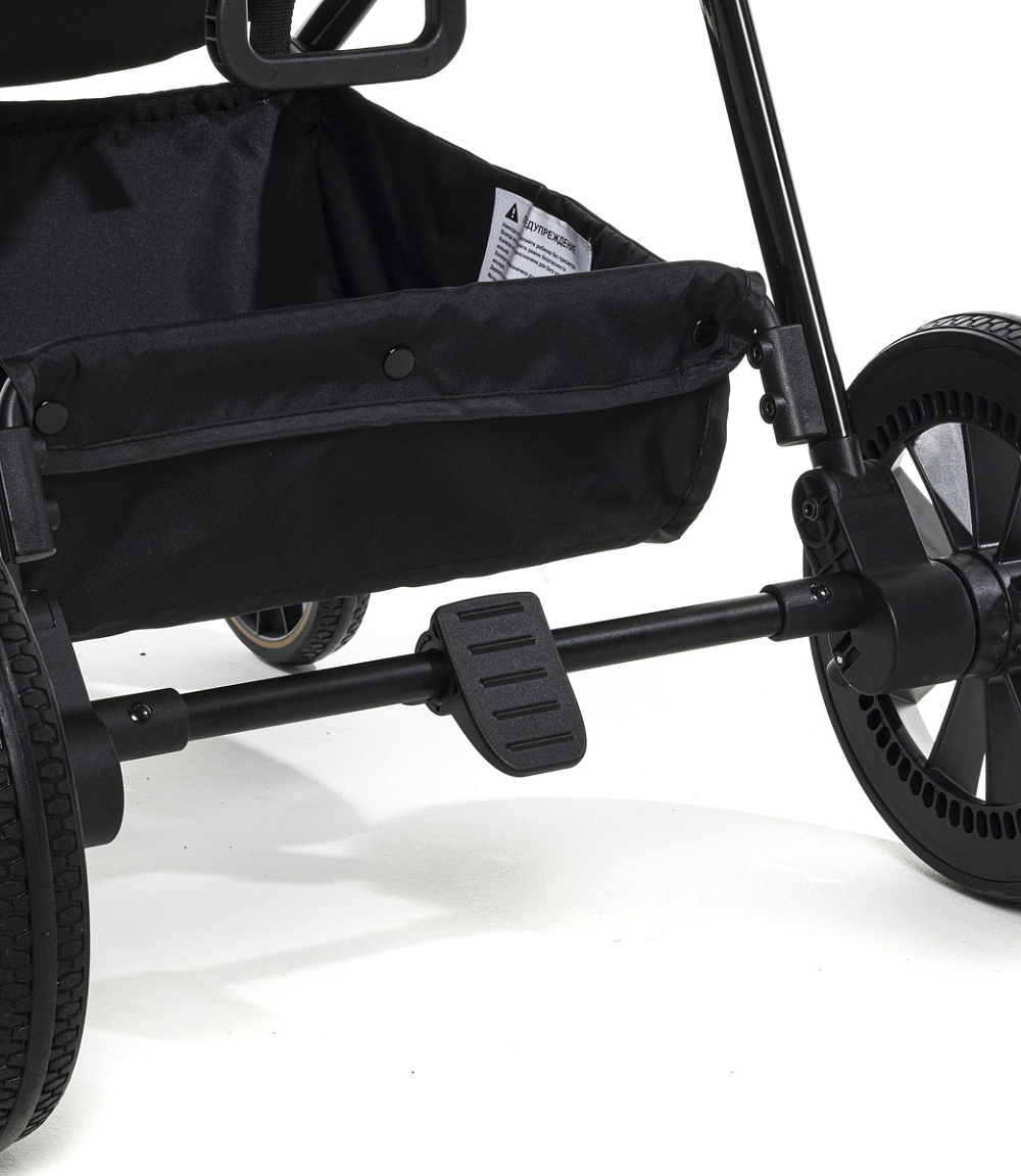 Длинная, регулируемая подножка регулируется легким нажатием кнопок сбоку и обеспечивает нужную поддержку ножек ребенка младшего возраста, а ее защитный материал на всю ширину придает легкость в эксплуатации, всегда можно протереть от грязи тряпкой или влажной салфеткой, а для детей постарше есть вторая независимая подножка на раме коляски.