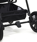 Длинная, регулируемая подножка регулируется легким нажатием кнопок сбоку и обеспечивает нужную поддержку ножек ребенка младшего возраста, а ее защитный материал на всю ширину придает легкость в эксплуатации, всегда можно протереть от грязи тряпкой или влажной салфеткой, а для детей постарше есть вторая независимая подножка на раме коляски.