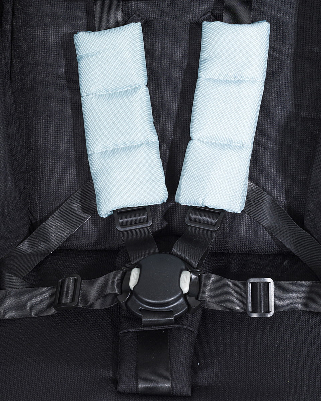 Бампер 360 градусов в сочетании с паховым ремнем защитит ребенка от выпадания. Бампер можно отстегнуть и откинуть, с одной стороны, благодаря чему Ваш ребенок сможет забраться в коляску самостоятельно, а 5-точечные ремни с мягкими плечевыми накладками и магнитная полуавтоматическая застежка (фастекс) с сильными магнитами будет служить дополнением для безопасности ребенка.