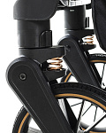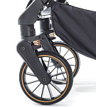 Коляска легкая, маневренная и отлично управляется даже одной рукой и отличается более мягким ходом, благодаря амортизации. Все колеса из EVA, а передние колеса поворотные на 360 градусов с системой амортизации «Anti Shock» (поглощение колебаний), обеспечивают мягкий и плавный ход коляски, а также разворот ее в любую сторону, даже на неровной дороге, при желании их можно заблокировать для движения прямо. Тормозная система EASY STOP. Регулируемая родительская ручка в 4 положениях позволяет настроить высоту ручки под рост родителей, что обеспечивает более комфортное управление коляской.