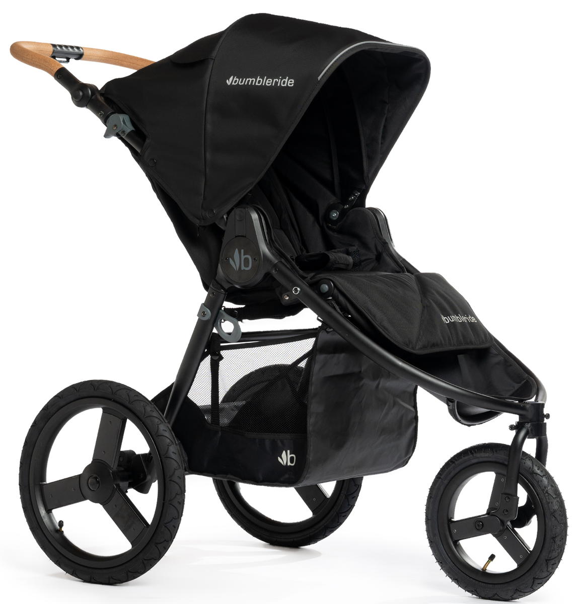 - Так, прогулочная коляска Bumbleride Speed снабжена большой вместительной корзиной для покупок с дополнительным карманом на молнии.