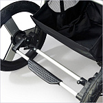 - Система трехколесная, при этом задняя пара колес увеличенного диаметра, а вот переднее чуть поменьше и имеет поворотный механизм, который позволяет ему вращаться вокруг оси и гарантировать для Bumbleride Speed отличную маневренность и более простое, быстрое управление.