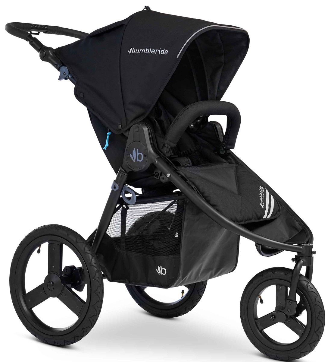 - Так, прогулочная коляска Bumbleride Speed снабжена большой вместительной корзиной для покупок с дополнительным карманом на молнии.