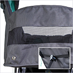 - Большой капюшон с козырьком в раскрытом виде почти полностью закрывает ложе на случай осадков или чрезмерно активного солнца. Так что ребенок будет надежно защищен.