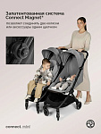 - Коляска с магнитной системой блокировки, которая автоматически соединяет аксессуары (или даже две коляски) всего за секунду.