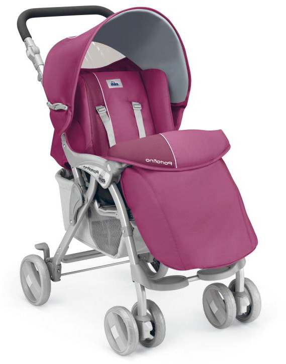 - Коляска CAM Portofino имеет алюминиевую раму, которая установлена на 2 пары колес, при этом передняя пара сдвоенная поворотная, задние же колеса могут блокироваться тормозом.
