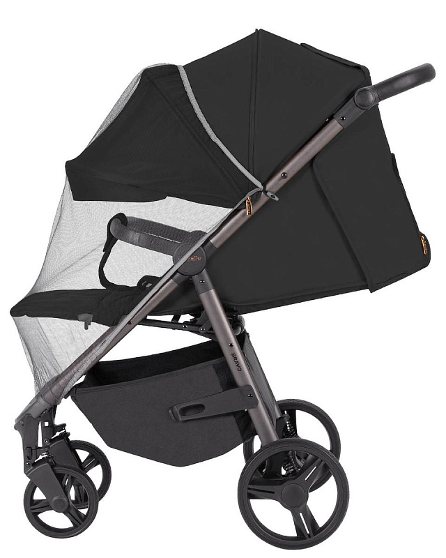 Родительская ручка, регулируемая по высоте в четырех положениях, обшита премиальной эко-кожей с тиснением логотипа, обеспечивая удобный и комфортный хват. В жаркую погоду можно открыть сетчатое окошко для проветривания, которое в холодную погоду плотно закрывается уплотненным отворотом на молнии – еще один пример продуманного дизайна, учитывающего все нюансы.