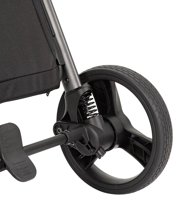Вместительная корзина для покупок с жестким дном и дополнительными секциями на молнии позволит вам взять с собой все необходимые вещи. Светоотражающие элементы на корзине повышают безопасность в темное время суток. Максимальная нагрузка на корзину составляет 3 кг. Передние колеса поворотные на 360°, с возможностью фиксации в прямом положении, что значительно упрощает управление коляской.