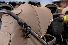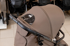 Родительская ручка, регулируемая по высоте в четырех положениях, обшита премиальной эко-кожей с тиснением логотипа, обеспечивая удобный и комфортный хват. В жаркую погоду можно открыть сетчатое окошко для проветривания, которое в холодную погоду плотно закрывается уплотненным отворотом на молнии – еще один пример продуманного дизайна, учитывающего все нюансы.