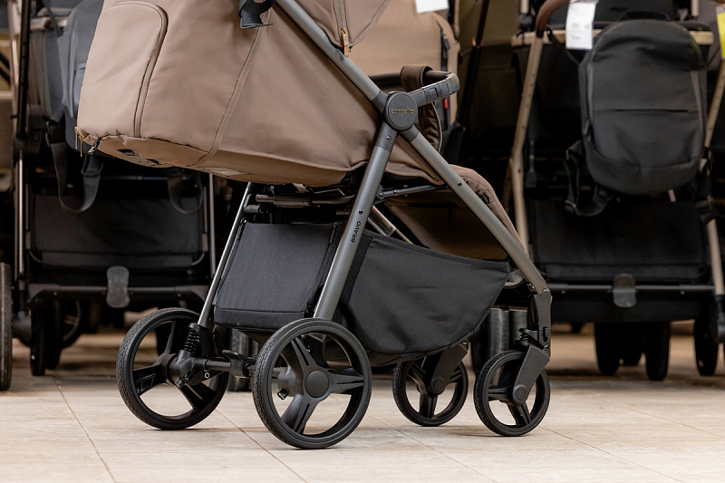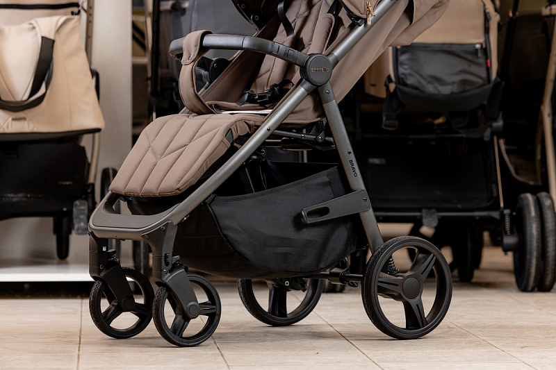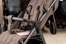 Начнем с внешнего вида. Эксклюзивный дизайн этой лимитированной серии проявляется в уникальной ткани, изысканной прошивке, высококачественной фурнитуре и стильном цвете рамы. Коляска выглядит элегантно и современно, привлекая внимание окружающих. Резиновые колеса с цепким протектором гарантируют плавный ход по асфальту, гравию, а даже по неровностям тротуарной плитки. Они эффективно гасят вибрации, обеспечивая малышу мягкую и комфортную поездку.