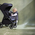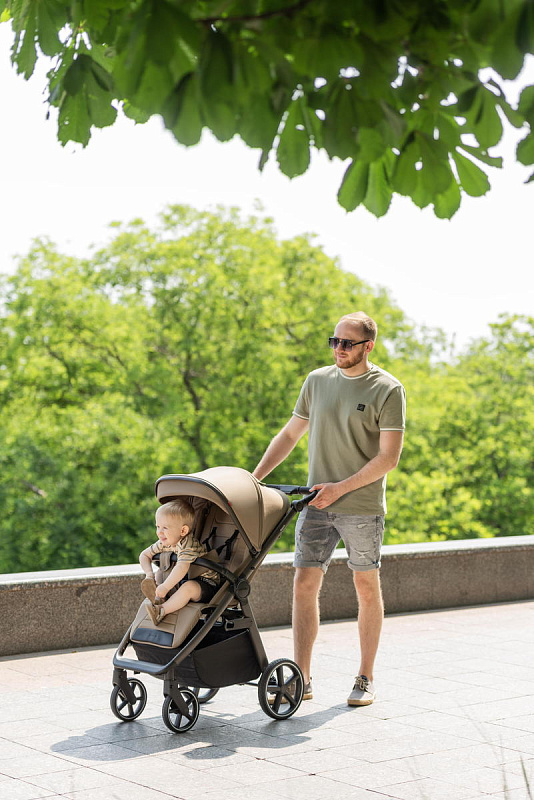 Особого внимания заслуживает усовершенствованная система амортизации. Теперь вы можете регулировать жесткость амортизации в зависимости от поверхности дороги, обеспечивая малышу комфортную поездку как по гладкому асфальту, так и по неровным дорожкам. Регулировка подножки стала ещё проще – теперь это делается одной рукой, что значительно облегчает управление коляской.