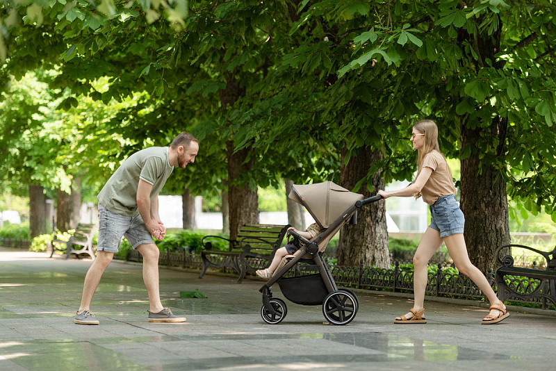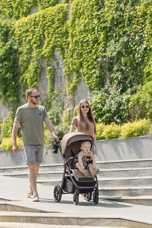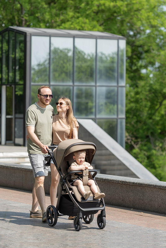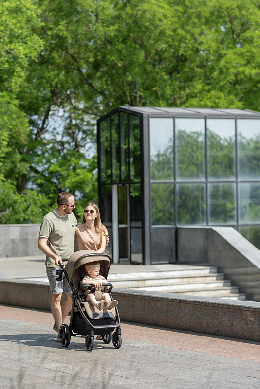 Особого внимания заслуживает усовершенствованная система амортизации. Теперь вы можете регулировать жесткость амортизации в зависимости от поверхности дороги, обеспечивая малышу комфортную поездку как по гладкому асфальту, так и по неровным дорожкам. Регулировка подножки стала ещё проще – теперь это делается одной рукой, что значительно облегчает управление коляской.