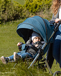 Безопасность ребенка обеспечивается пятиточечными ремнями, которые надежно фиксируют малыша в коляске. Спинка регулируется с помощью ремня до 175 градусов, что позволяет создать удобное положение для сна или отдыха. Пружинная амортизация на всех колесах обеспечивает плавный ход и сглаживает неровности дороги.