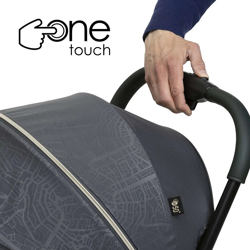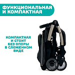 - Автоматическое складывание. Коляска сама складывается всего одним движением. В сложенном виде очень компактная и стоит без опоры.