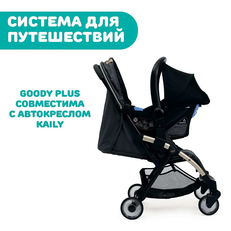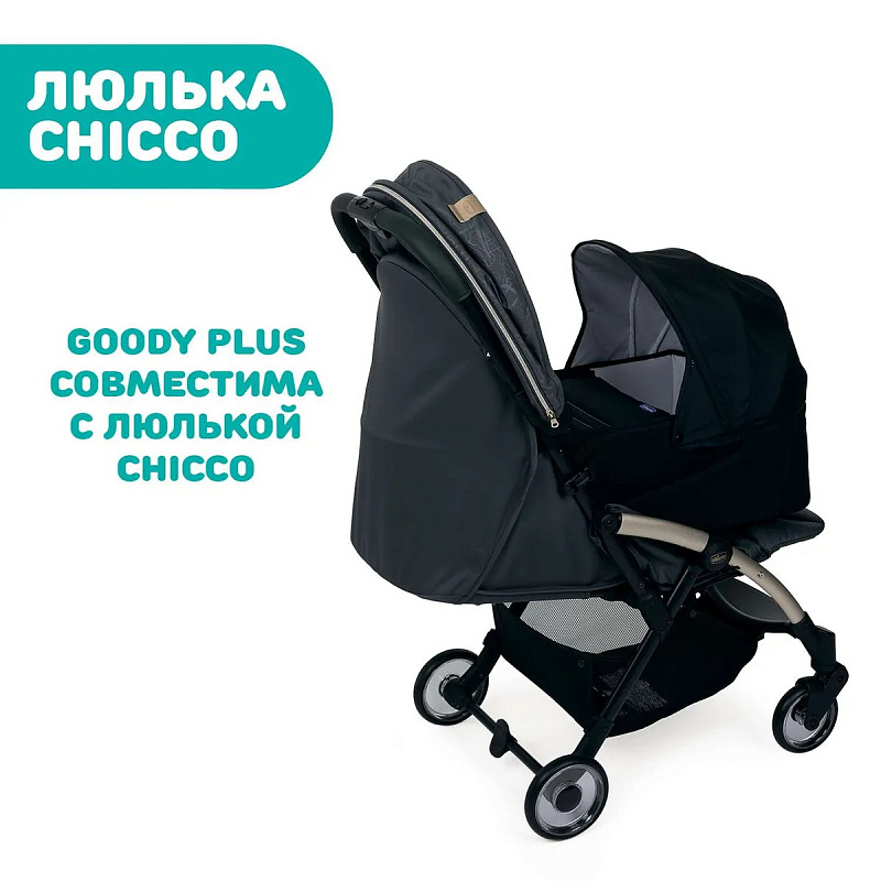 - Система для путешествий. Goody Plus легко превратить в полноценную систему для путешествий: коляска совместима с автокреслом Chicco Kaily, а также с люлькой Chicco (приобретаются дополнительно)