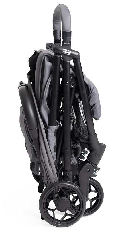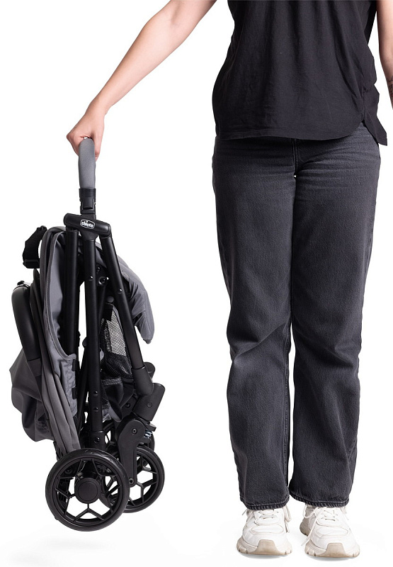 Система быстрого закрытия одной рукой для упрощения вашей повседневной жизни. В закрытом состоянии коляска Urbino стоит самостоятельно и ее можно легко транспортировать, используя бампер в качестве ручки.
