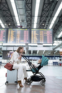 Eezy S Twist+2 — идеальный спутник в путешествии. Он помещается в багажные отсеки большинства самолетов, используемых авиакомпаниями для регулярных рейсов. В самолетах с очень маленькими багажными отсеками сиденье легко снимается с рамы одним щелчком. Поэтому вы можете передать раму экипажу самолета для хранения в багажном отделении, а сиденье можно взять с собой в салон, чтобы защитить его от грязи и повреждений.