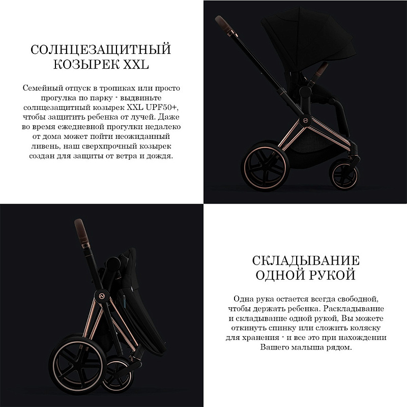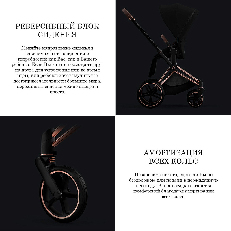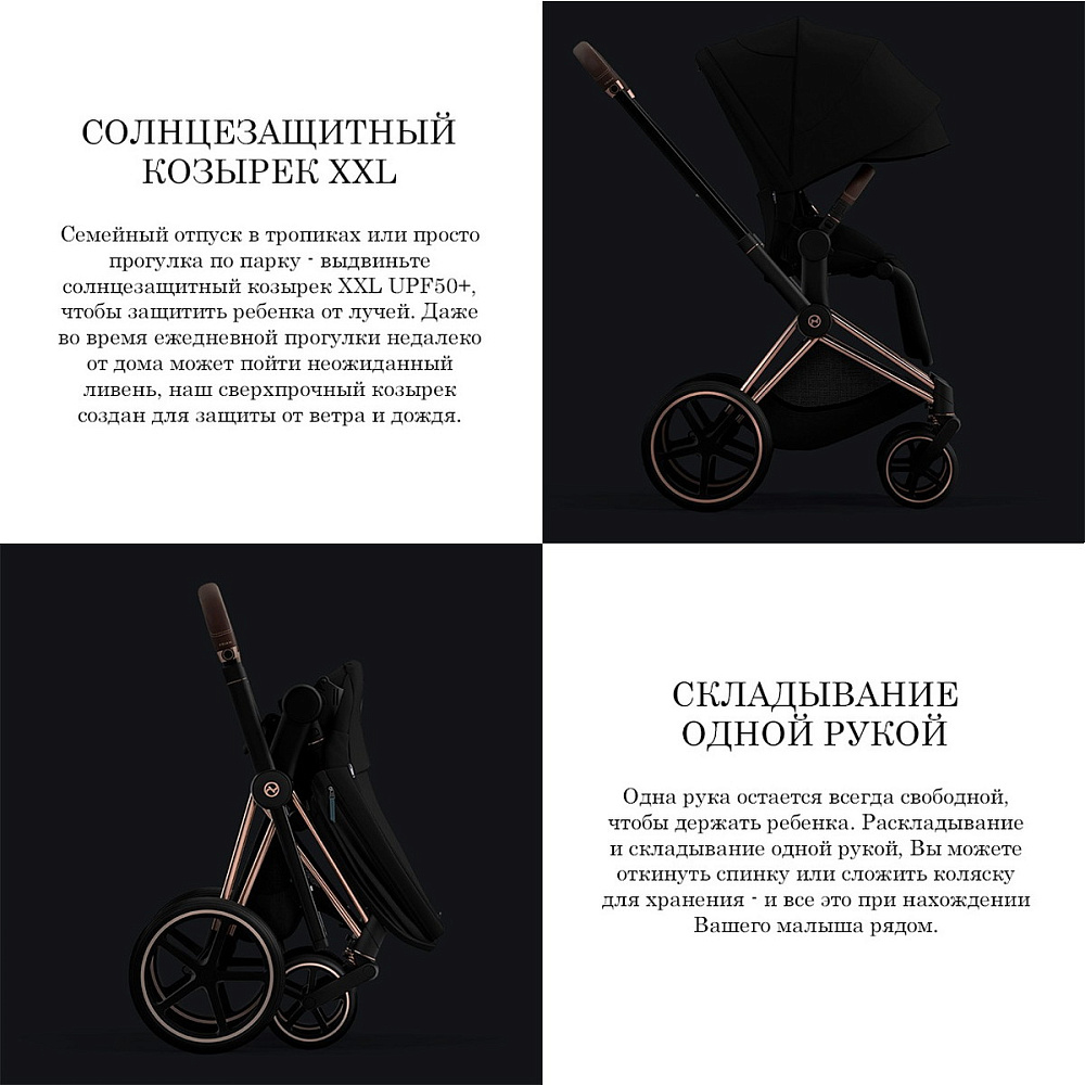 Одна из главных особенностей коляски Cybex Priam IV - ее маневренность и удобное шасси, которое позволяет устанавливать различные компоненты в зависимости от возраста ребенка или условий прогулки, такие как спальный блок-люлька (приобретается отдельно), прогулочный блок или автокресло группы 0+ (приобретается отдельно). Все эти возможности делают коляску-конструктор Cybex Priam IV особенно привлекательной в паре с наличием стильных лимитированных коллекций, разработанных совместно с известными дизайнерами.