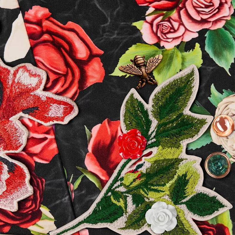 Design Collaborations - в основном атласные ткани со смелыми принтами, вышивками и аппликациями, которые были созданы совместно с такими вдохновляющими личностями, как Каролина Куркова, DJ Khaled, и такими брендами стиля жизни, как Scuderia Ferrari.