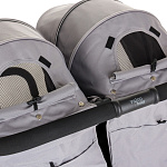- Несмотря на то, что рассчитана на двойню, коляска достаточно компактная, а в сложенном виде занимает и вовсе минимум места.