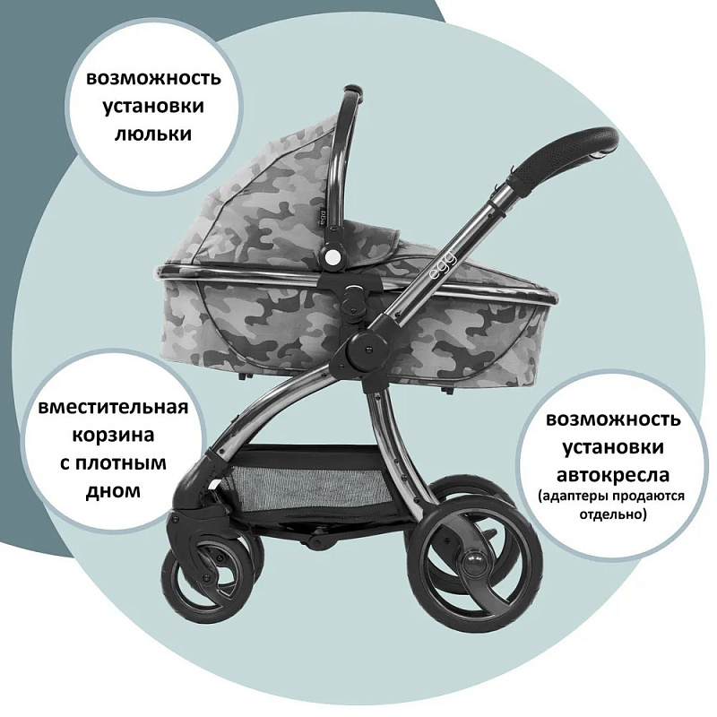 - Важно отметить, что в случае необходимости, на раму коляски с помощью адаптеров можно устанавливать автокресло бренда или же люльку Egg Stroller для новорожденных.