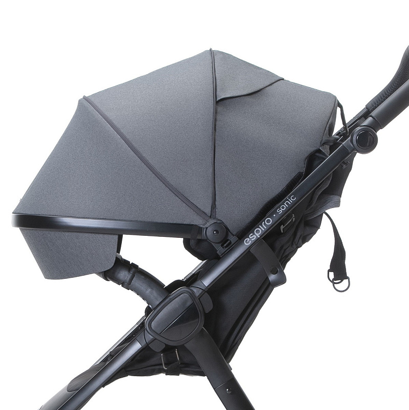 Коляску можно использовать с рождения ребенка - благодаря специальным адаптерам на раму можно установить универсальную люльку для новорожденных Espiro Una и автомобильные кресла марок Maxi Cosi, Cybex.