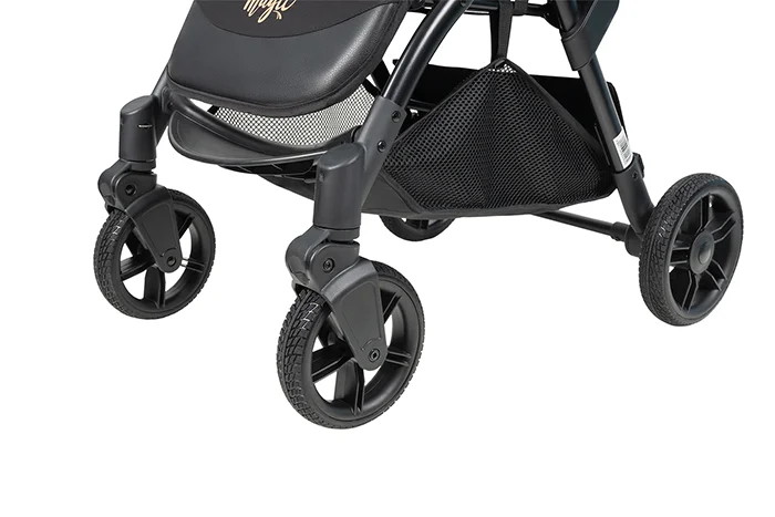 Колеса: передние поворотные колеса из PU делают коляску маневренной и легкой в управлении, а также они съемные для удобства мытья.