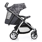 - Передняя ось колес уже задней, сами колеса спереди меньше задних, поворотные с функцией фиксации. В дополнение есть система амортизации. Так что коляска гарантировано маневренная, обладает отличной проходимостью и легко управляется.