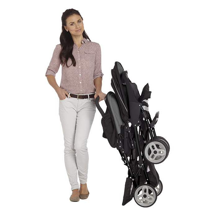 Переднее и заднее сидение снабжены подносами-бамперами с приспособлением для бутылочки и игрушек.