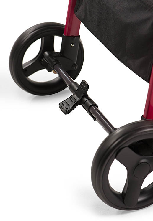 - Для обеспечения высокой безопасности, исключения возможности самопроизвольного передвижения коляски на задней оси колес установлена тормозная педаль.