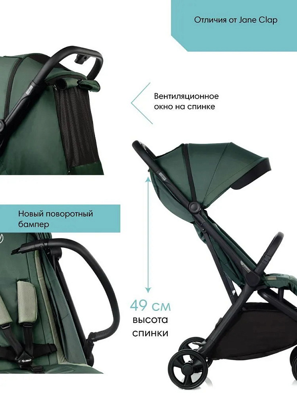 Обновленная версия коляски Jane Сlap - теперь еще удобнее и практичнее. Спинка коляски стала выше на 3 см, на спинке появилось дополнительной вентиляционное окошко, а открывать бампер стало еще проще - теперь он поворотно-откидной.