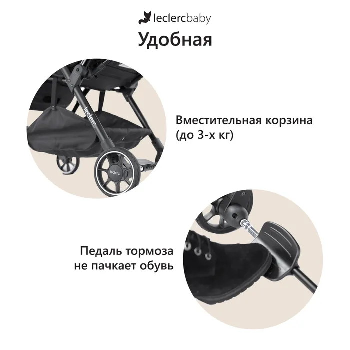 - широкая педаль тормоза позволяет легко зафиксировать коляску