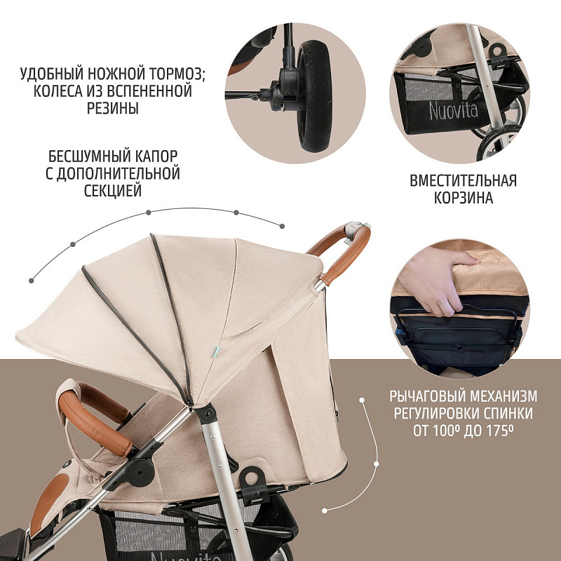 Прогулочная коляска Nuovita Corso Beige, Argento / Бежевый, Серебристый