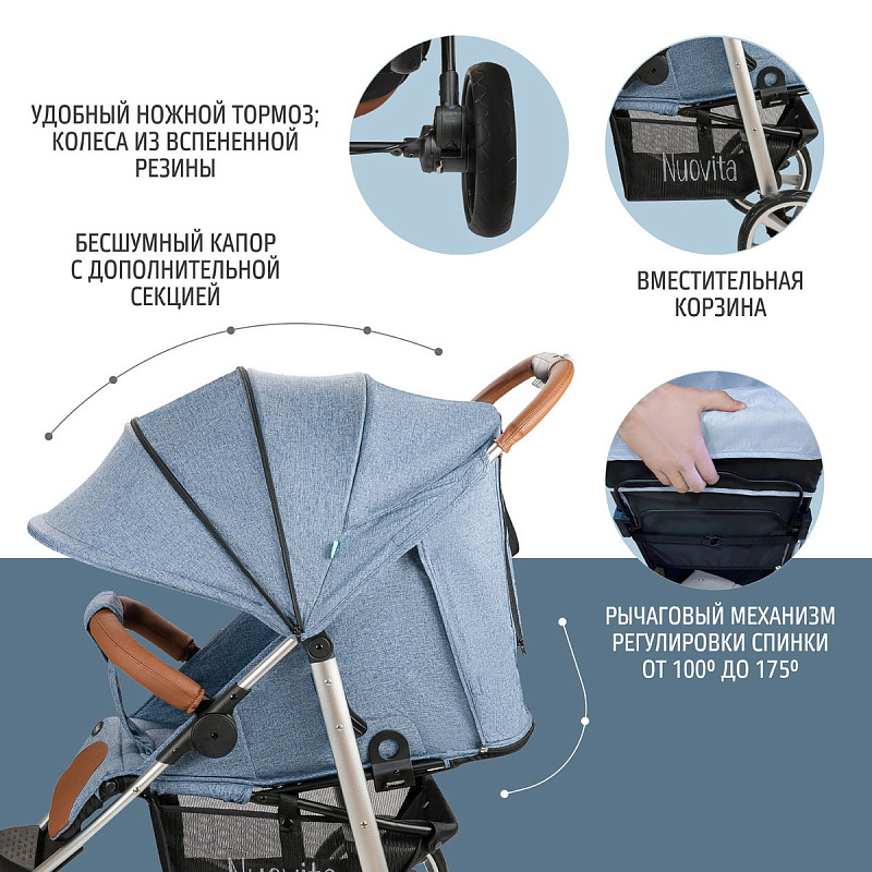 Прогулочная коляска Nuovita Corso Denim, Argento/ Джинсовый, Серебристый