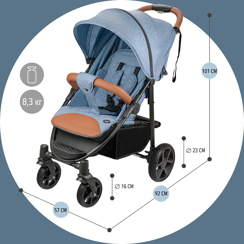 Количество колёс, размеры колес4; диаметр задних колес: 23 см; диаметр передних колес: 16 см