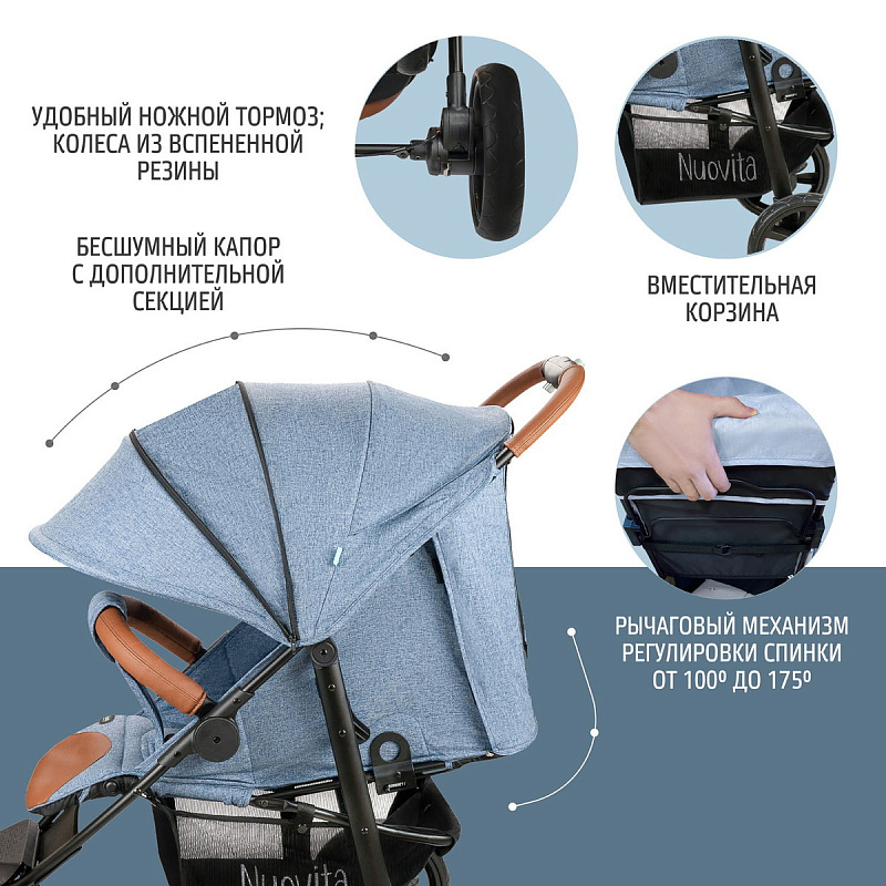 Прогулочная коляска Nuovita Corso Denim, Nero / Джинсовая, Черный