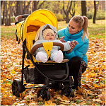 - Объемный капюшон с бесшумным механизмом оградит кроху от непогоды и может опускаться до самого бампера, за счет предусмотренной молнии для расширения.