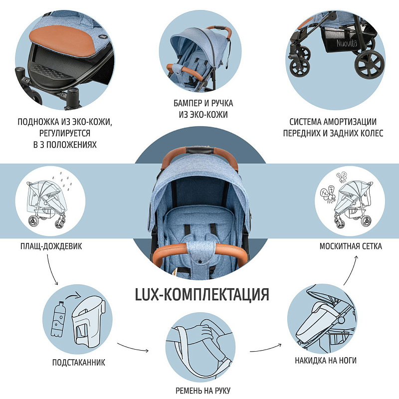 Каждодневные прогулки можно совершать в комфорте, благодаря приобретению прогулочной коляски Nuovita Corso. Купить ее будет хорошим вариантом и практичным вложением средств. Стильный внешний вид станет подтверждением вашего хорошего вкуса. Родители могут быть спокойны за активного непоседу - имеется возможность зафиксировать кроху пятиточечными ремнями безопасности.
