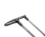- Ручка регулируется в нескольких положениях и позволяет настроить коляску максимально удобно для родителя. Маневренность и дополнительный комфорт обеспечивает обшивка из мягкой эко-кожи.