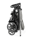 Прогулочная коляска Veloce складывается и раскладывается всего одной рукой с помощью специальной централизованной системы складывания, расположенной на ручке. В сложенном виде занимает очень мало места, и сама стоит без опоры, не пачкая ручку и тканевую обивку.