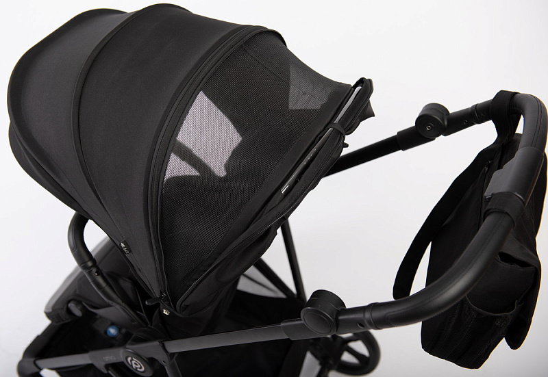 Вместительная открытая корзина. В корзине расположена дополнительная сумка-шоппер (фиксируется на карабинах). В сумку легко помещаются вещи необходимые на прогулке, также ее можно отстегнуть и переносить на плече;
