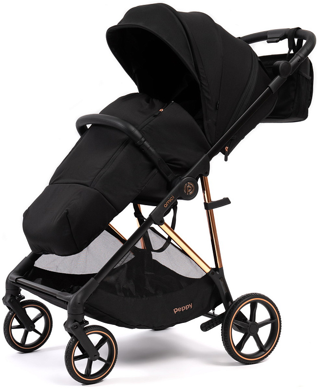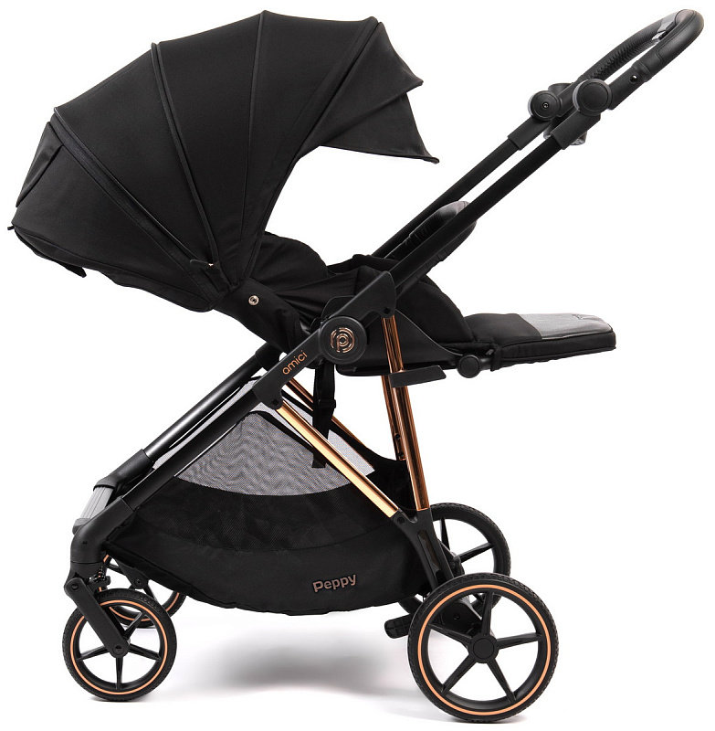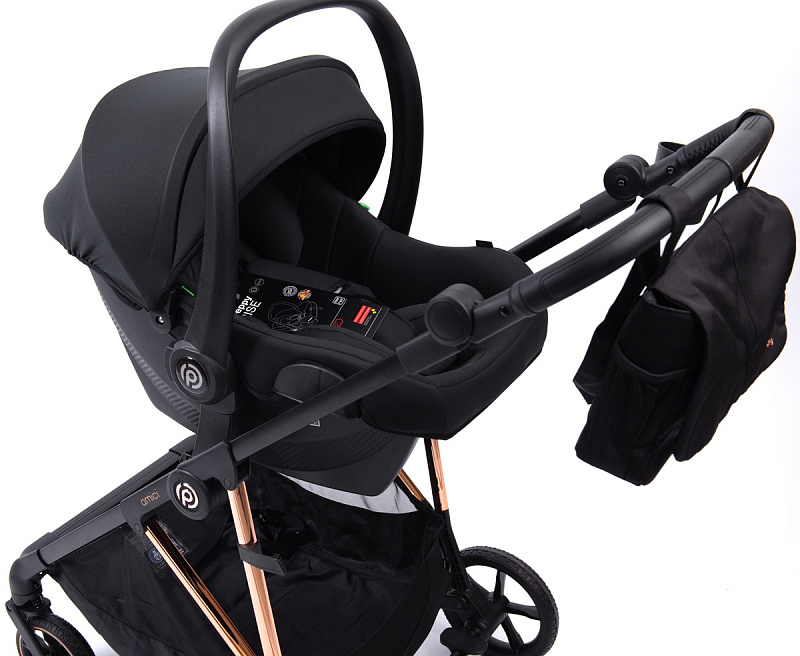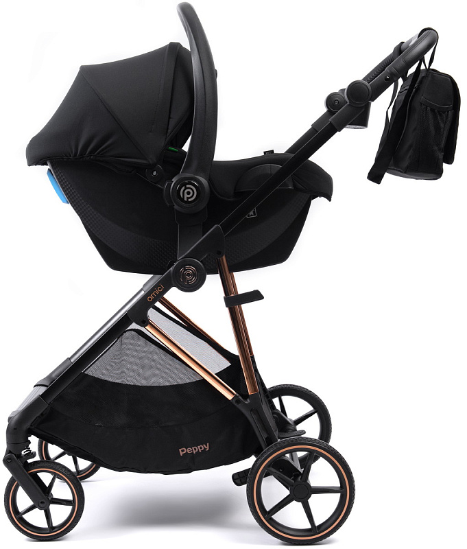 Прогулочная коляска Peppy Amici с автокреслом Rise Black Black рама Gold