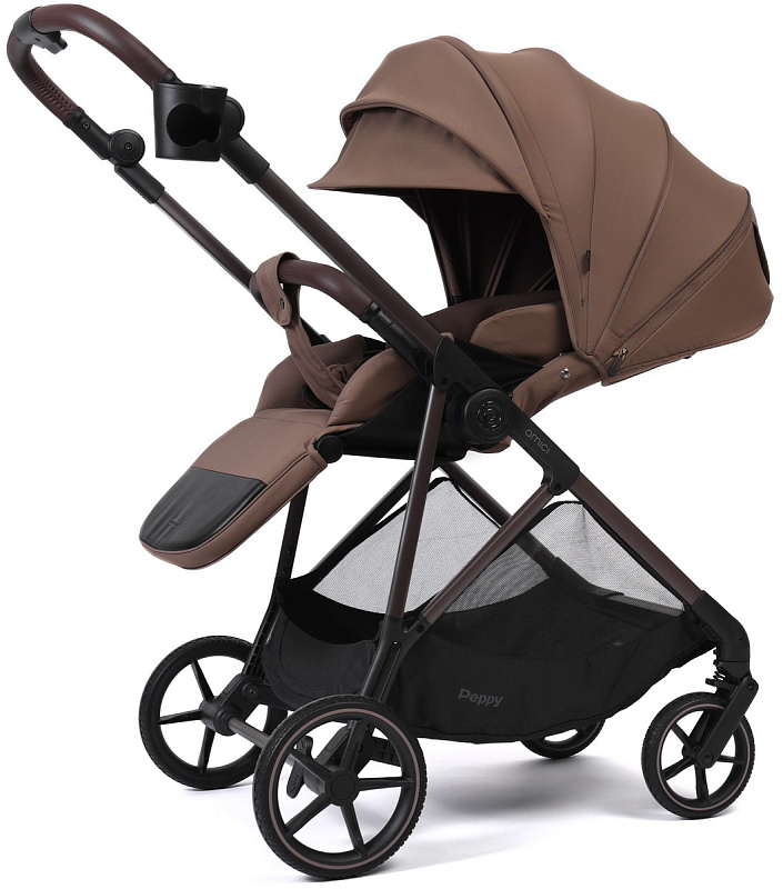 Прогулочная коляска Peppy Amici с автокреслом Rise Black Mocca рама Mocca