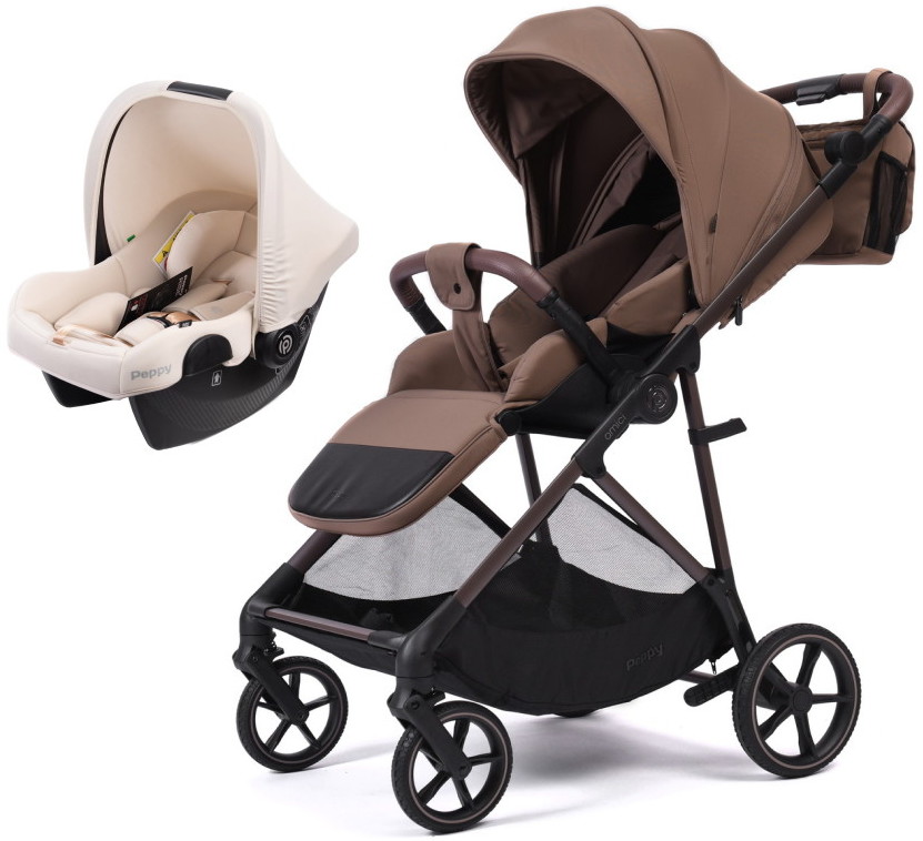 Прогулочная коляска Peppy Amici с автокреслом Rise Milk Mocca рама Mocca
