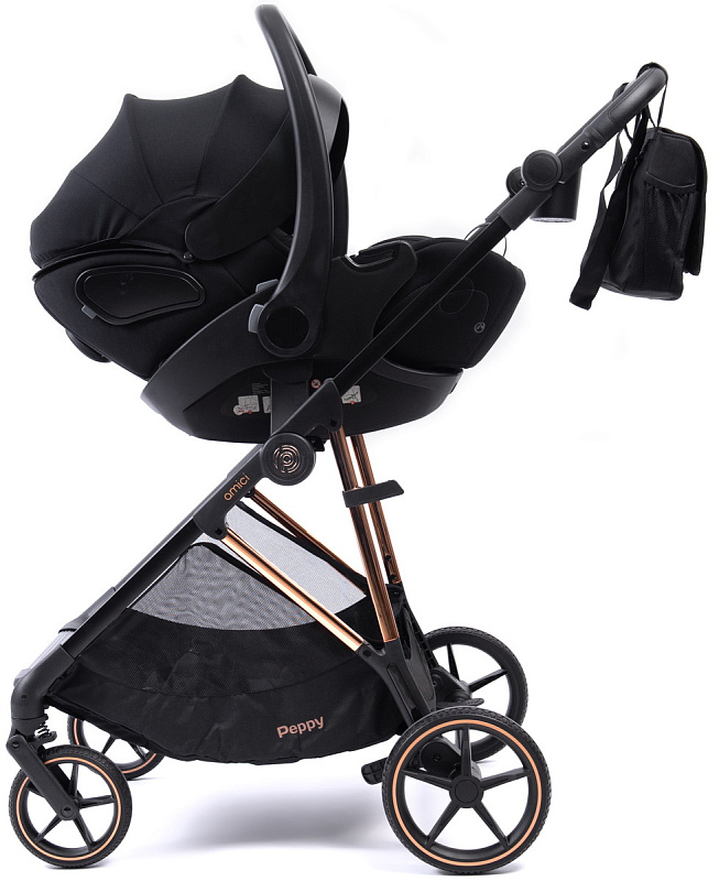 Прогулочная коляска Peppy Amici с автокреслом Verona Black Beige рама Gold