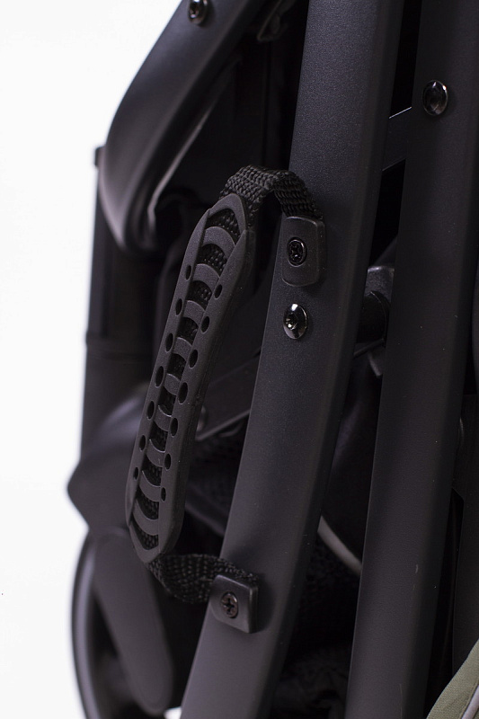 Легкая рама из алюминиевого сплава – грузоподъёмность коляски до 22 кг. На раме есть фиксатор сложенного положения;